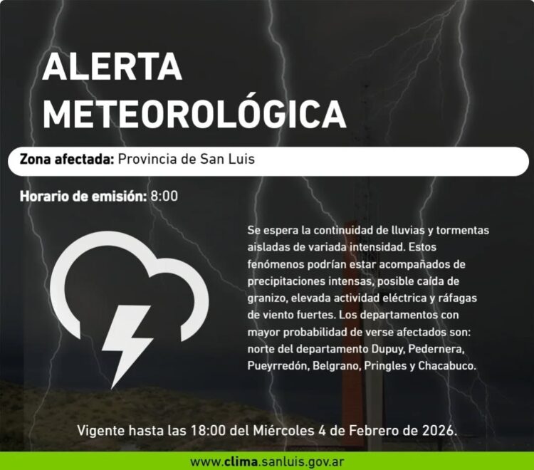 VECINOSDEJUANAKOSLAY.COM / 04 DE FEBRERO Se espera la continuidad de lluvias y tormentas aisladas de variada intensidad. Estos fenómenos podrían...