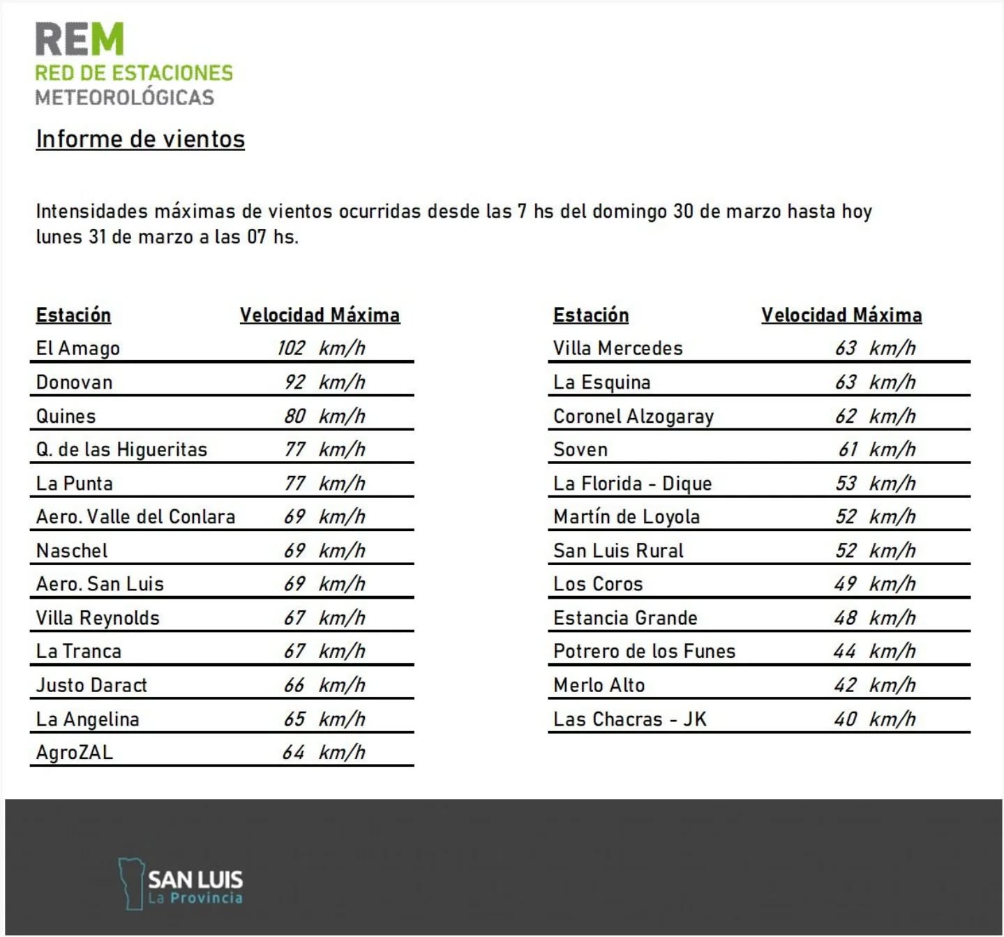 El Amago fue el lugar con mayor intensidad de vientos los que superaron los 102 km/h