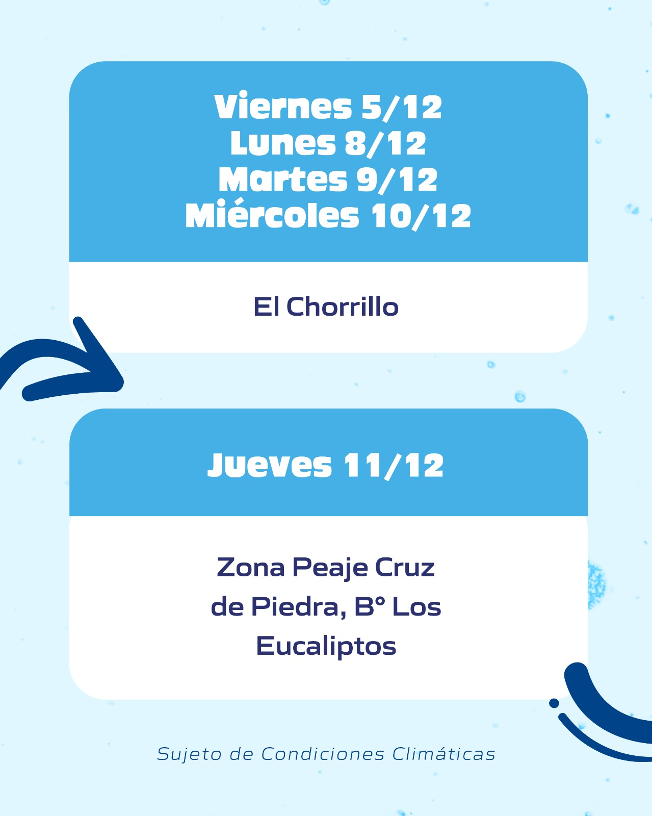 Compartimos el cronograma de las tareas de control y medición del consumo de agua potable en los distintos barrios de nuestra ciudad.