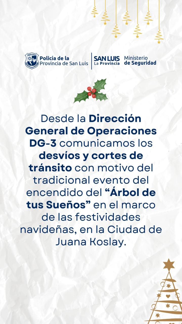 Cortes y desviaciones previstos por el evento del encendido del “Árbol de Tus Sueños”, los días 6, 7 y 8 de diciembre, a realizarse en la Plazoleta Cruz de Piedra.