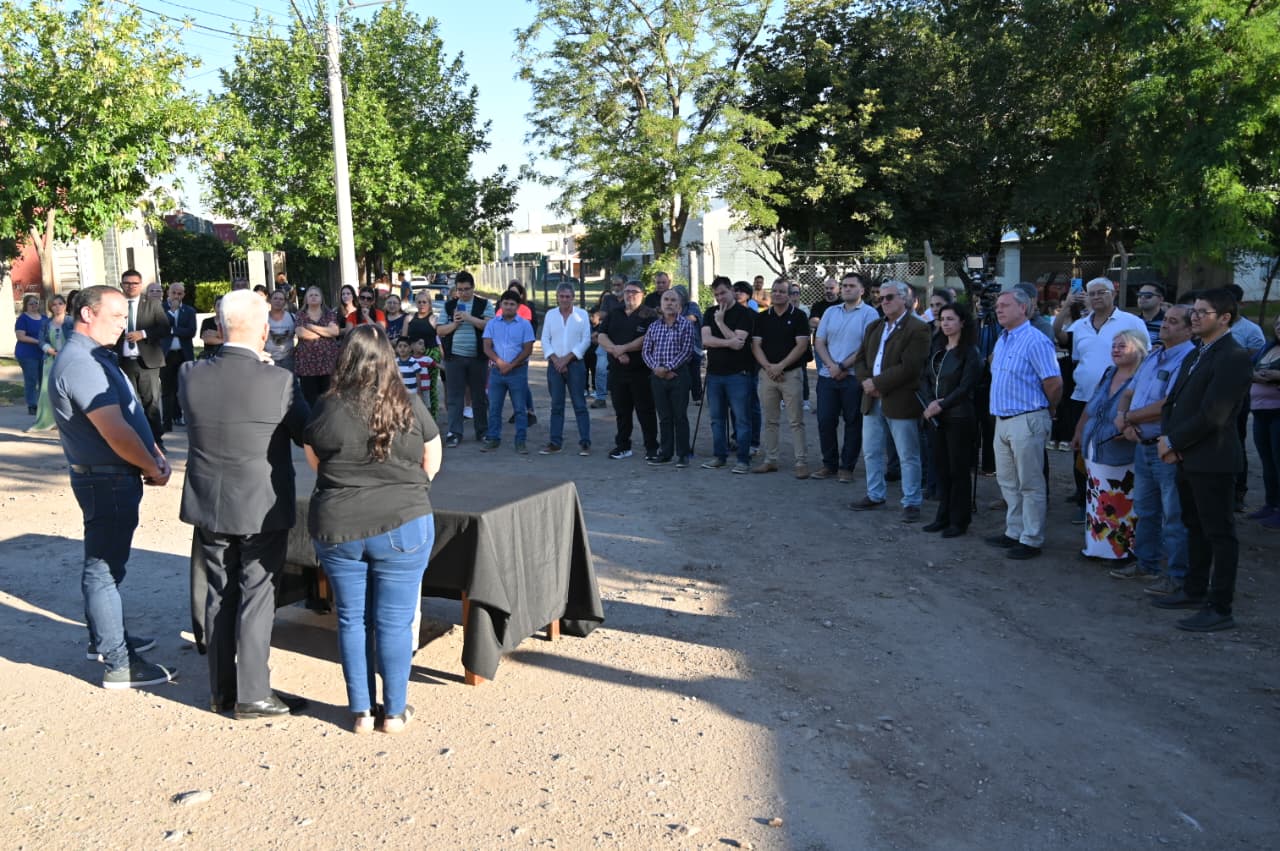 Poggi, en su llegada, saludó a quienes se acercaron al barrio Los Fresnos para ser testigos de este nuevo avance en pos de la concreción de la obra de gas.