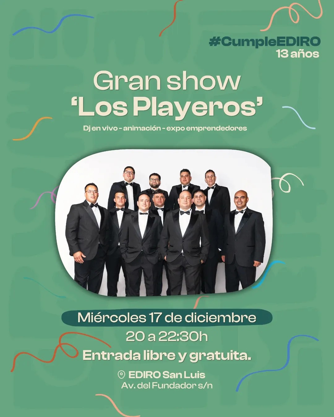 Este miércoles, la Estación de Interconexión Regional de Ómnibus (EDIRO) celebrará su 13° aniversario con un gran show protagonizado por una de las bandas más convocantes de San Luis, Los Playeros. Si bien la velada estaba prevista para el sábado 6 de diciembre, debido a las inclemencias climáticas debió ser reprogramada.