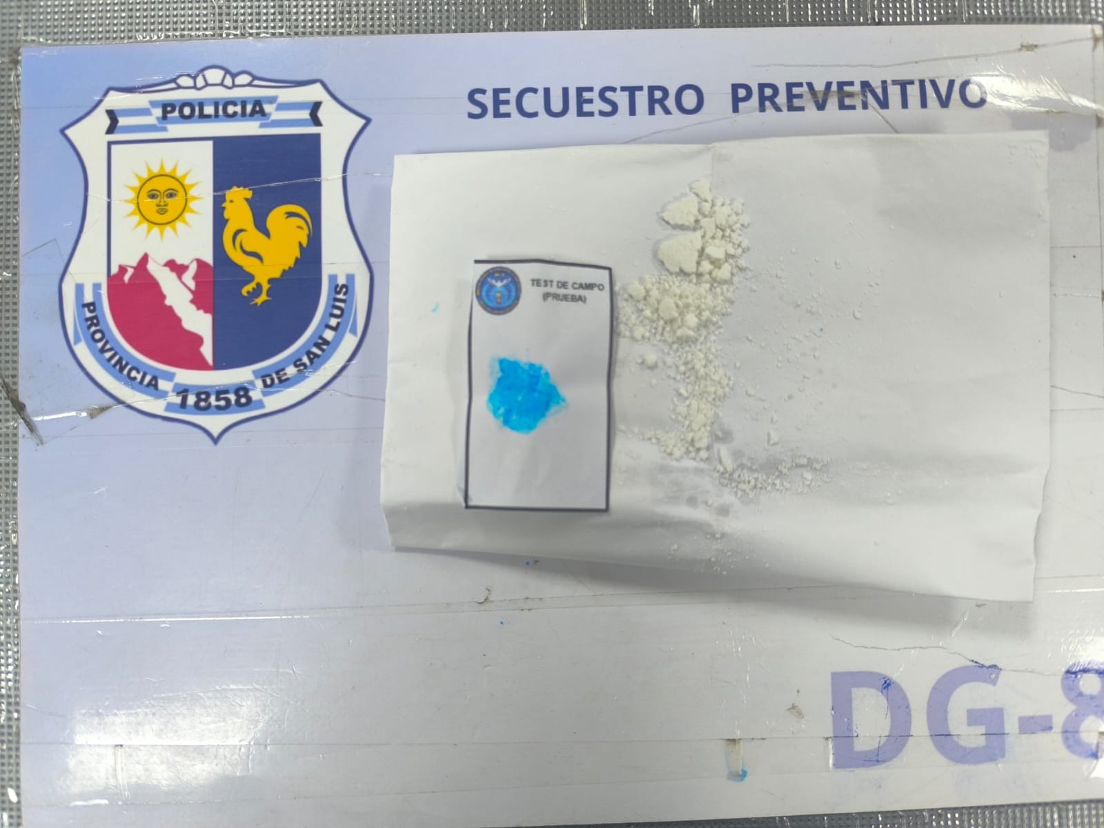 Al realizar la requisa del hombre se encontró entre sus pertenencias un envoltorio de papel con cocaína, la cual fue incautada por policías de Lucha Contra el Narcotráfico.