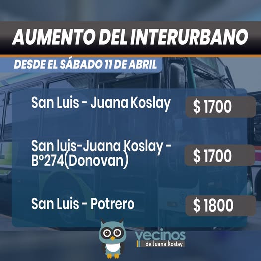 • Desde el sábado 11 de abril rigen nuevas tarifas en el transporte interurbano de San Luis abril 10, 2026