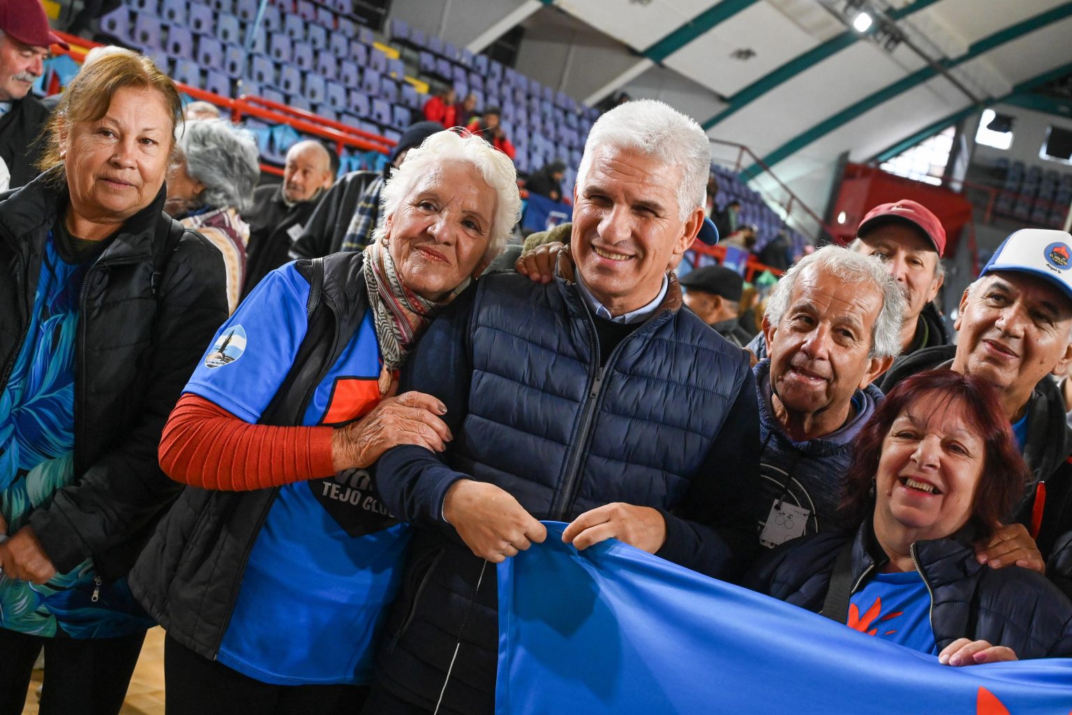 Integrantes de 12 centros de jubilados del departamento Pueyrredón se congregaron este miércoles desde las 8:00 en el microestadio del Polideportivo ‘Ave Fénix’ de Juana Koslay para la primera fecha departamental deportiva y recreativa de ‘Grandes Amigos’, la iniciativa interministerial que acerca políticas deportivas, educativas, recreativas y de salud a los adultos mayores. Y el gobernador Claudio Poggi quiso estar presente en esta actividad.